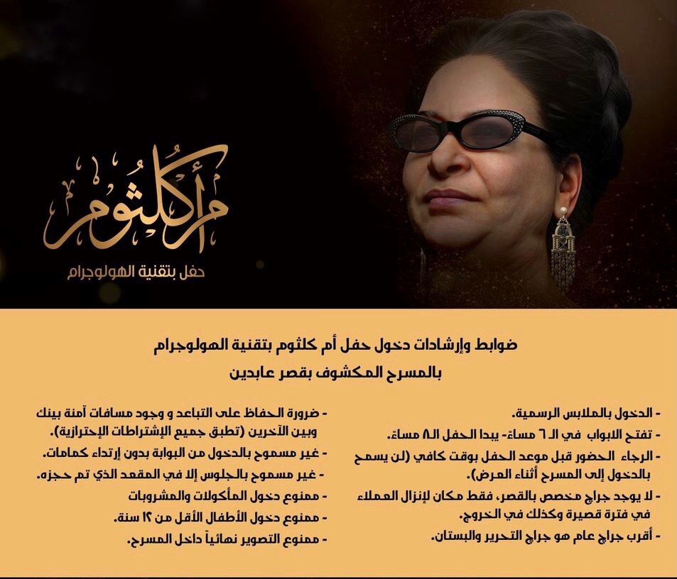 يسر مجلس إدارة النادي ولجنة الرحلات الداخلية الإعلان عن رحلة الزمن الجميل لحضور حفل كوكب الشرق السيدة أم كلثوم بقصر عابدين بتقنية الهولوجرام وذلك خلال أيام ٢١ و ٢٢ نوفمبر بالمواصفات التالية :