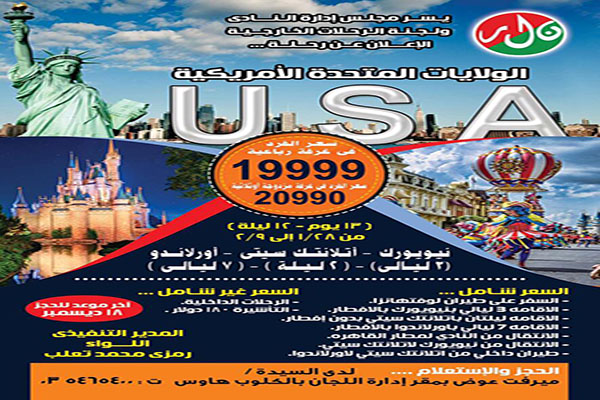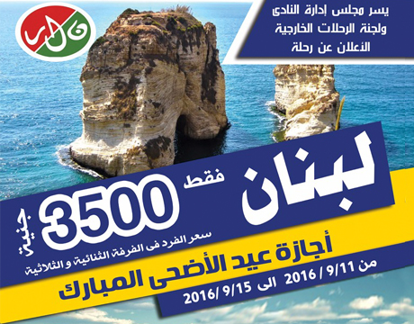 يسر مجلس إدارة النادي ولجنة الرحلات الخارجية الأعلان عن رحلة لبنان في الفترة